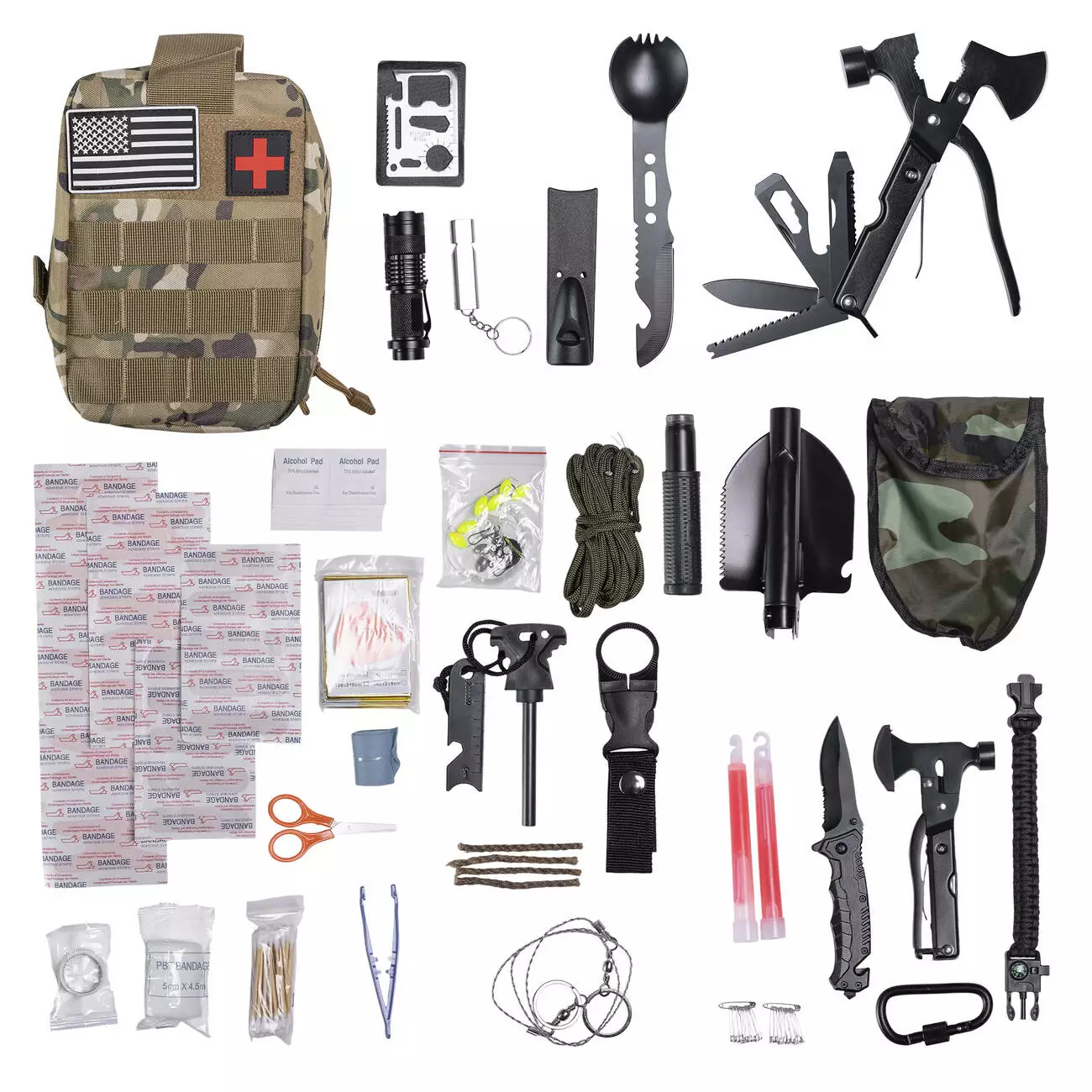 Набір для виживання з підсумком та базовою аптечкою - зручний комплект для туризму та виживання в екстрених умовах. Комплект включає все необхідне для захисту від сонця та дощу, набір інструментів для створення укриття та розведення багаття, а також набір для надання першої медичної допомоги.