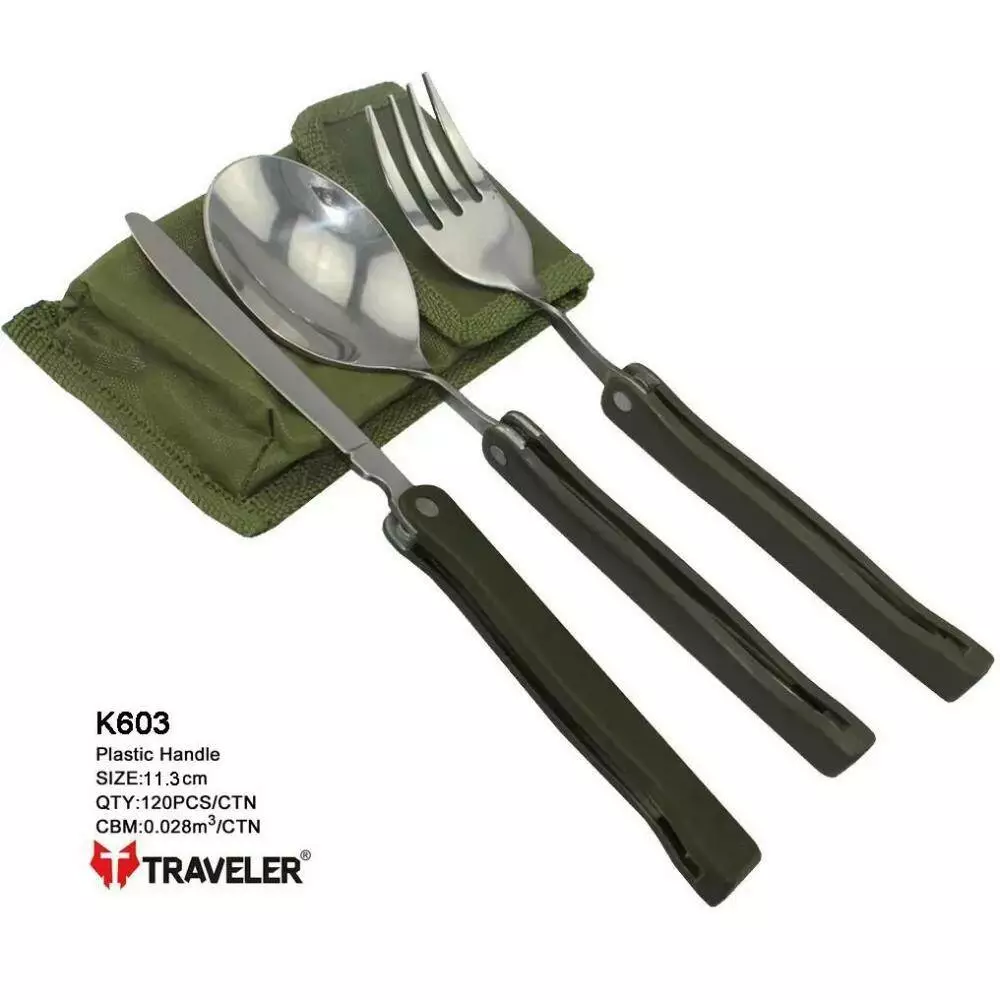 Туристичний набір Traveler 3 в 1 похідний ніж, вилка, ложка 11,3 см K-603
