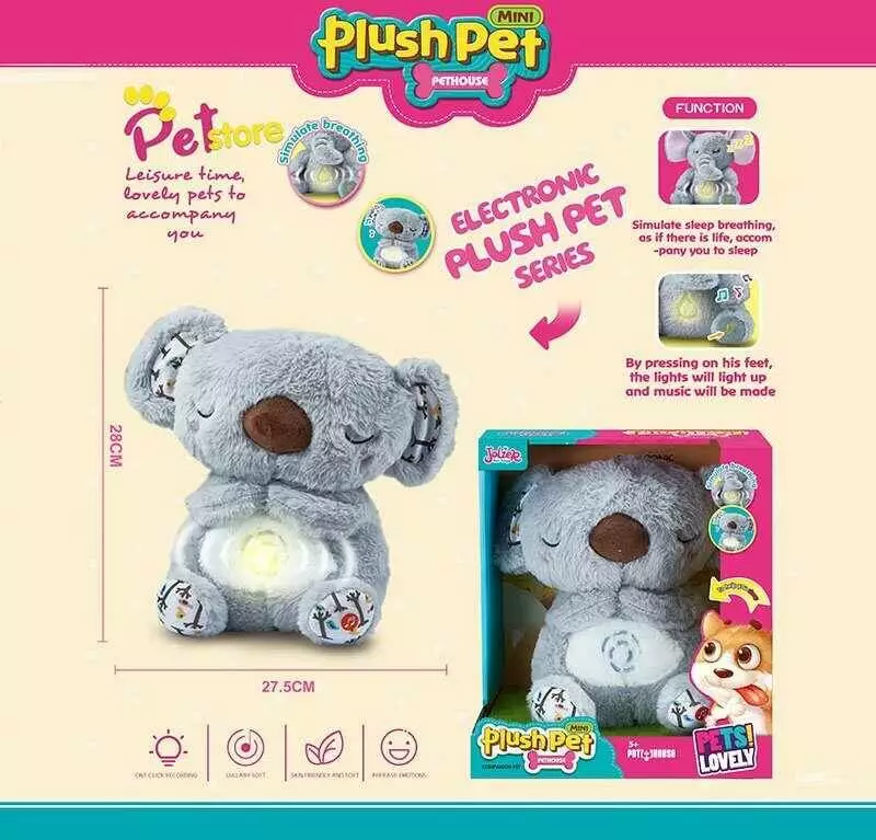 Головна > Каталог > Інтерактивна іграшка MC 1110 (18) “Коала”, висота 28 см, підсвічування, сплюшка, мелодія, дихає, на батарейках, для сну, в коробці оптом