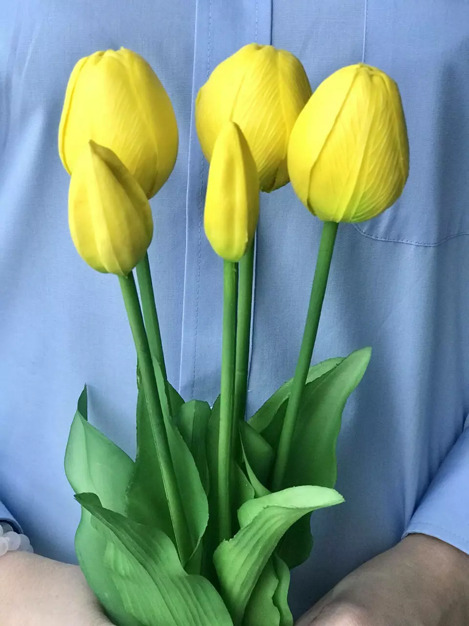 Ці тюльпани виготовлені з високоякісного латексу, що робить їх максимально реалістичними на вигляд і дотик. Гнучкі стебла дозволяють змінювати форму букета, адаптуючи його під будь-яку вазу чи квіткову композицію. Букет можна ставити у вазу з водою – і квіти виглядатимуть, як щойно зрізані!