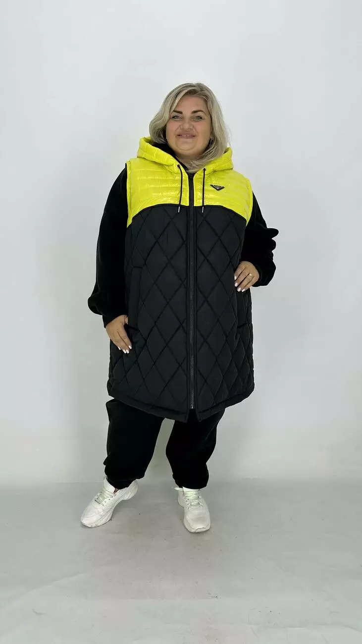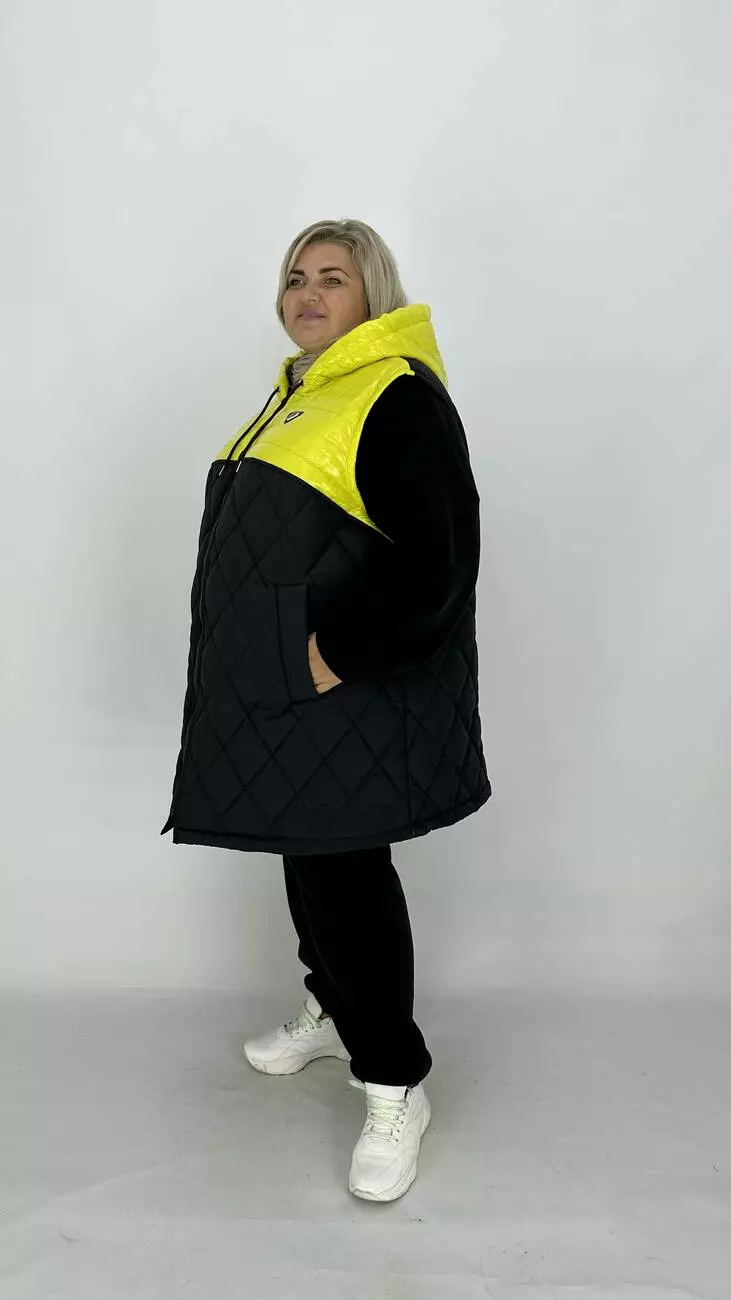Стильний жилет вільного крою з капюшоном, кишені листочки, застібка змійка
