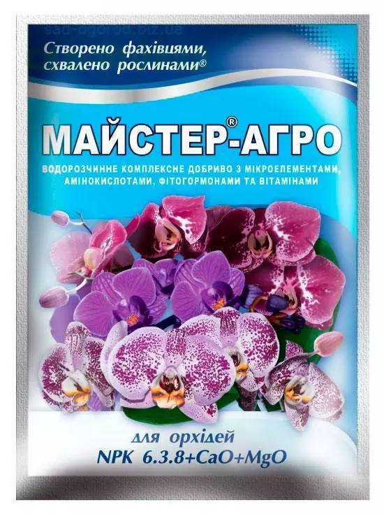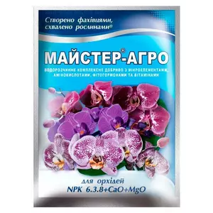 Удобрение Мастер-Агро для орхидей NPK: 6.3.8 + CaO + MgO - высокоэффективное, безхлорное, водорастворимое комплексное удобрение для питания большинства видов орхидей (Фаленопсис, Однотония, Вейлстекеара, Каттлея, Цимбидиум, Камбрия и др.) с микроэлементами в форме хелатов. Выпускается в оптимально подобранном соотношении NPK с добавлением кальция и магния, cпециально сбалансированных для питания орхидей на различных стадиях развития растения. Не содержит хлор и натрий. Содержит полный набор микроэлементов в форме ЕDTA. Быстро усваивается растениями, полностью растворим, прост в применении. Кальций и магний, которые содержатся в удобрении, обеспечивают деление клеток, что увеличивает массу наземной части растений, способствует интенсивному окрашиванию листьев и цветков. Сбалансированное соотношение микро- и макроэлементов, аминокислот, фитогормонов и витаминов удовлетворяет все нужды растений в питательных веществах на разных стадиях развития, стимулирует цветение.
