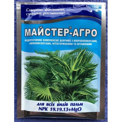 Мастер-Агро для пальм (25 гр) - эффективное водорастворимое бесхлорное комплексное удобрение с микроэлементами в форме хелатов. Применяется для корневой подкормки всех видов пальм: Драцены, Калатеи, Ливистоны, Монстеры, Маранты, Фиников, Хамедореи, Хамеропсов, Ховеи, Юки и др.