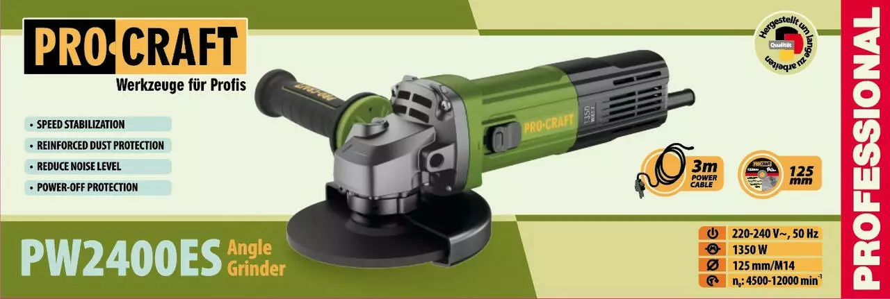Углошлифовальная машина Procraft PW2400ES 125 мм