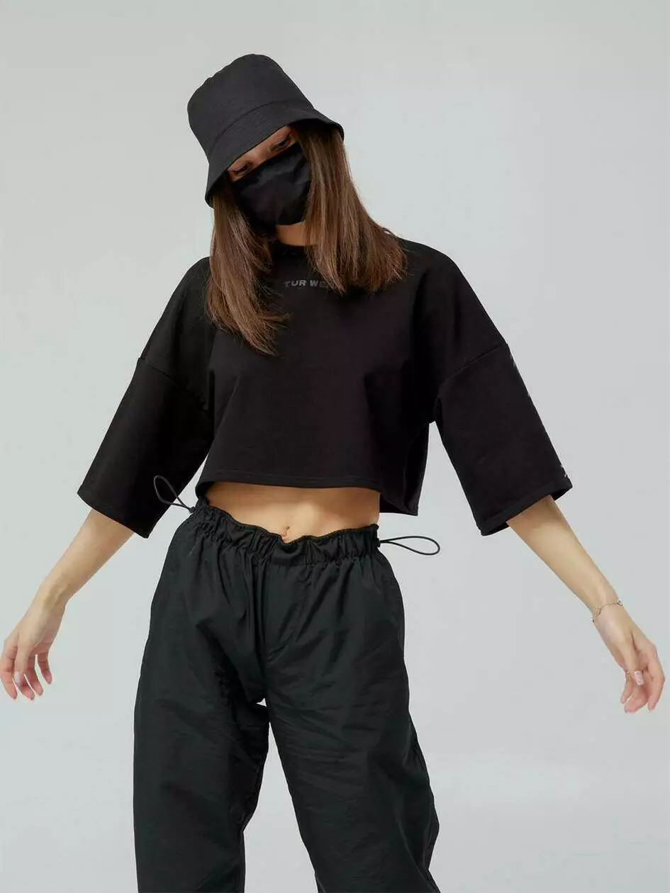 Укорочена футболка вільного крою з подовженим рукавом, що додає