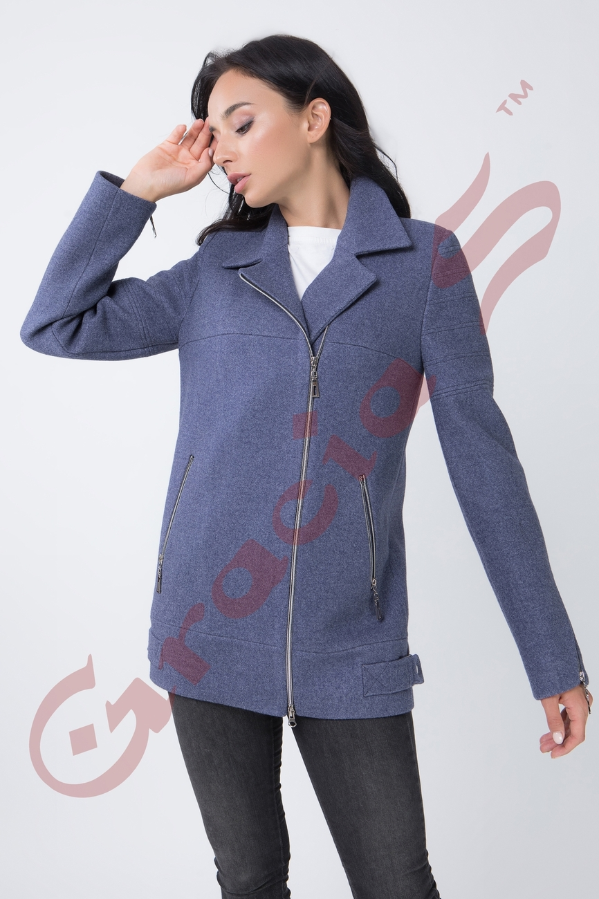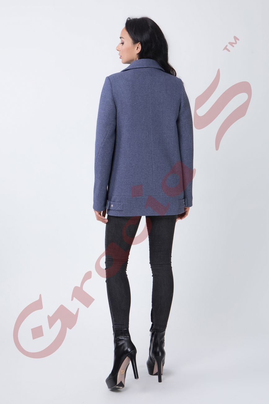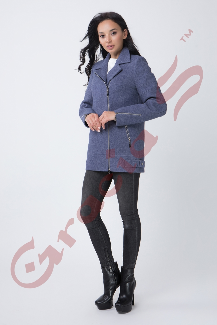 Укороченное пальто со строгим отложным воротником на змейке.