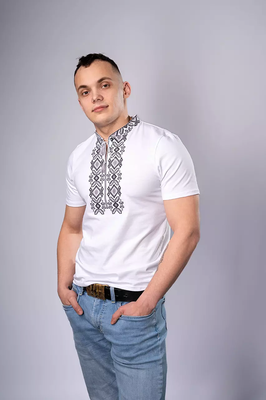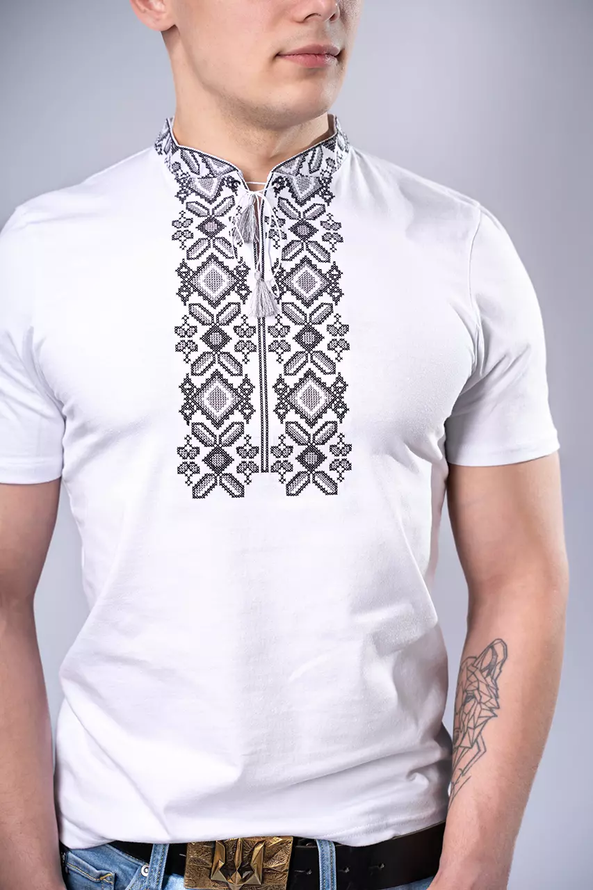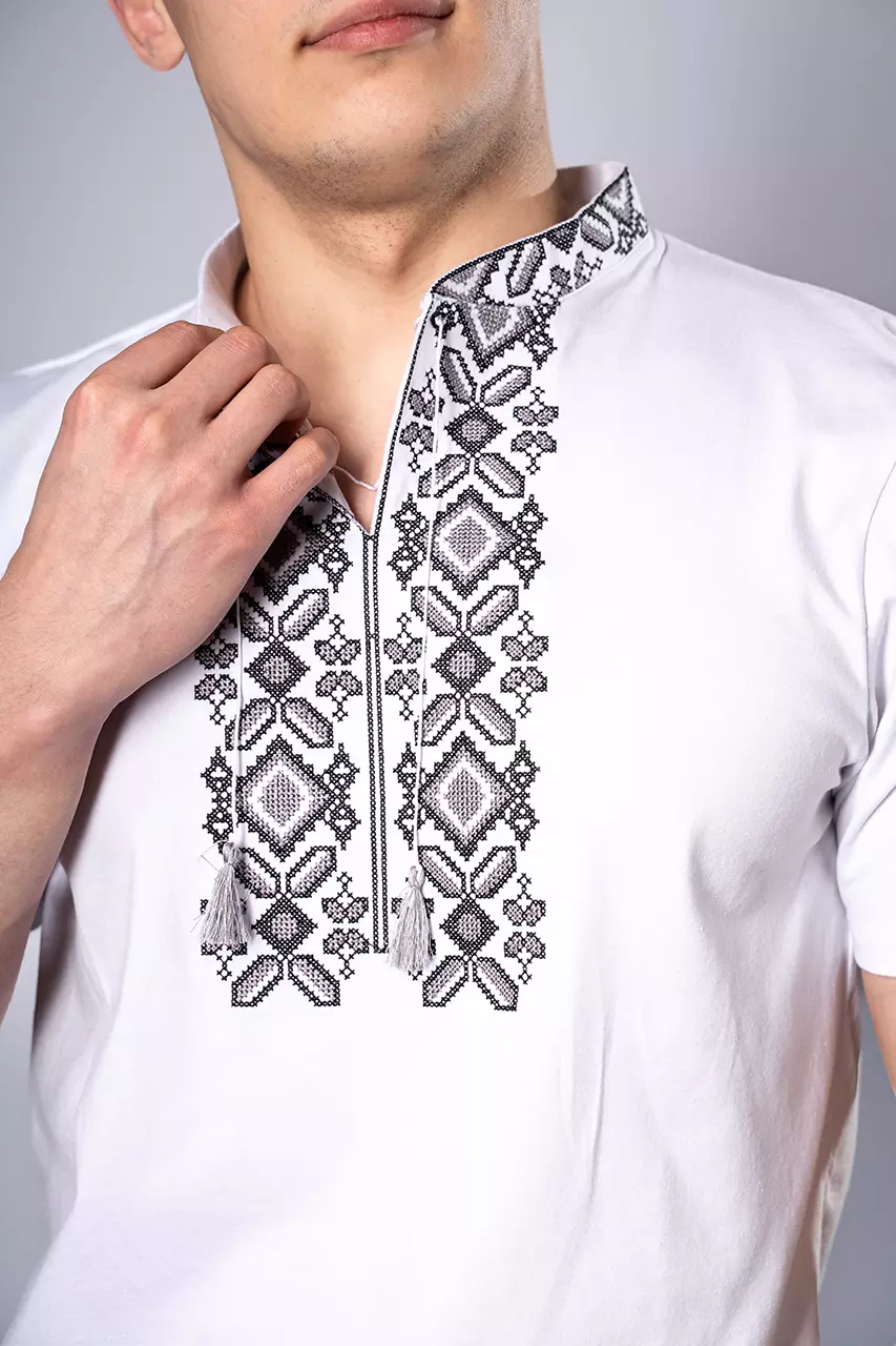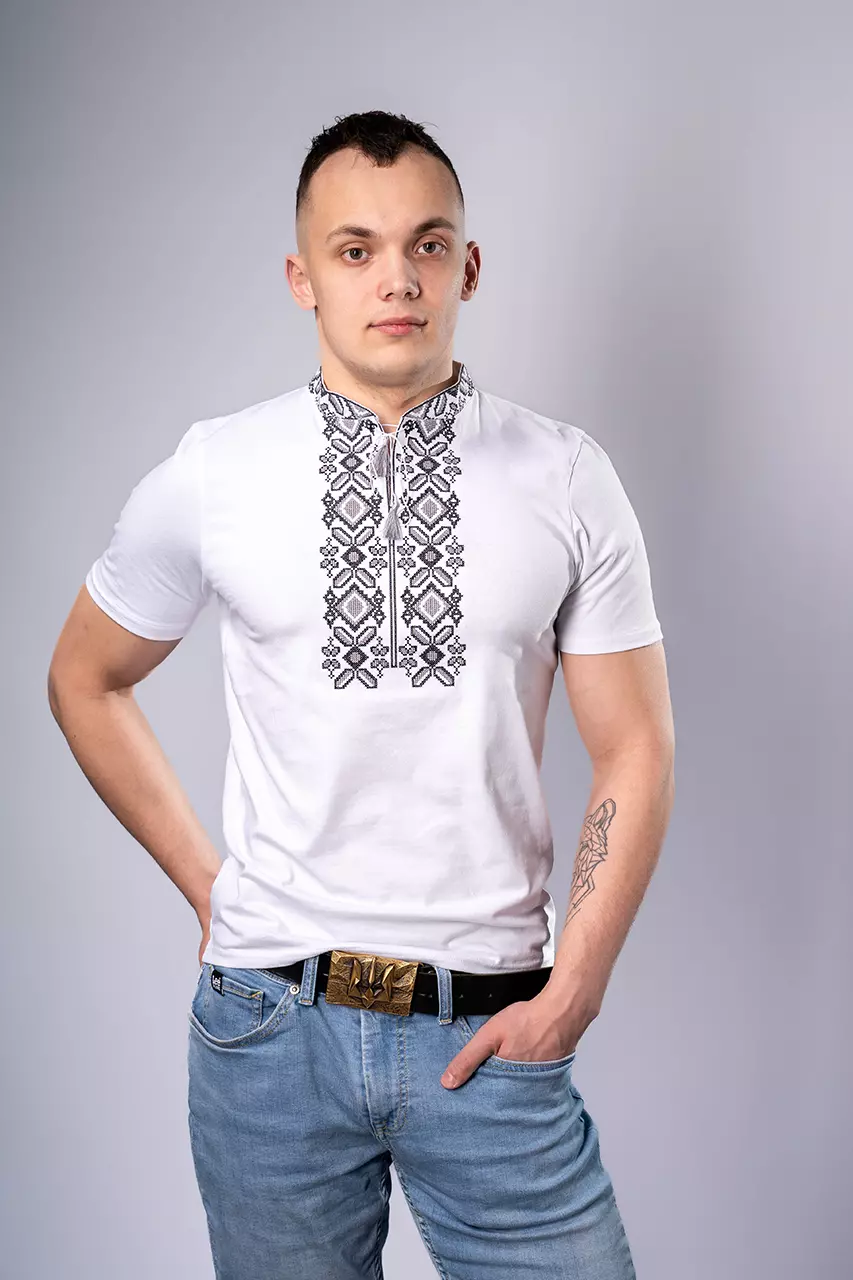 Чоловіча вишита футболка Гетьман білого кольору із сірою вишивкою - це справжня традиційна українська вишиванка, яка демонструє дух козацтва, гетьманцтва та січі. Ідеально підійде, як для носіння на кожен день із джинсами та кросівками, так і для святкових днів або державних свят.