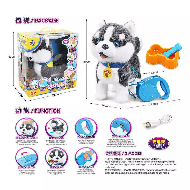 Головна > Каталог > Улюбленець 55 G-10 (12/2) пісні англ., реаг. на дотик, повторює слова, ходить, звуки, рух голови (ніби облиз.), виляє хвост., акум. 3..7 V, в коробці оптом