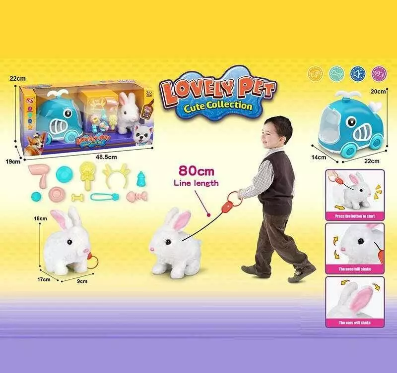 Улюбленець 926-3 (16/2) "Кролик", переноска, ходить, пищить, на повідці, аксесуари, в коробці