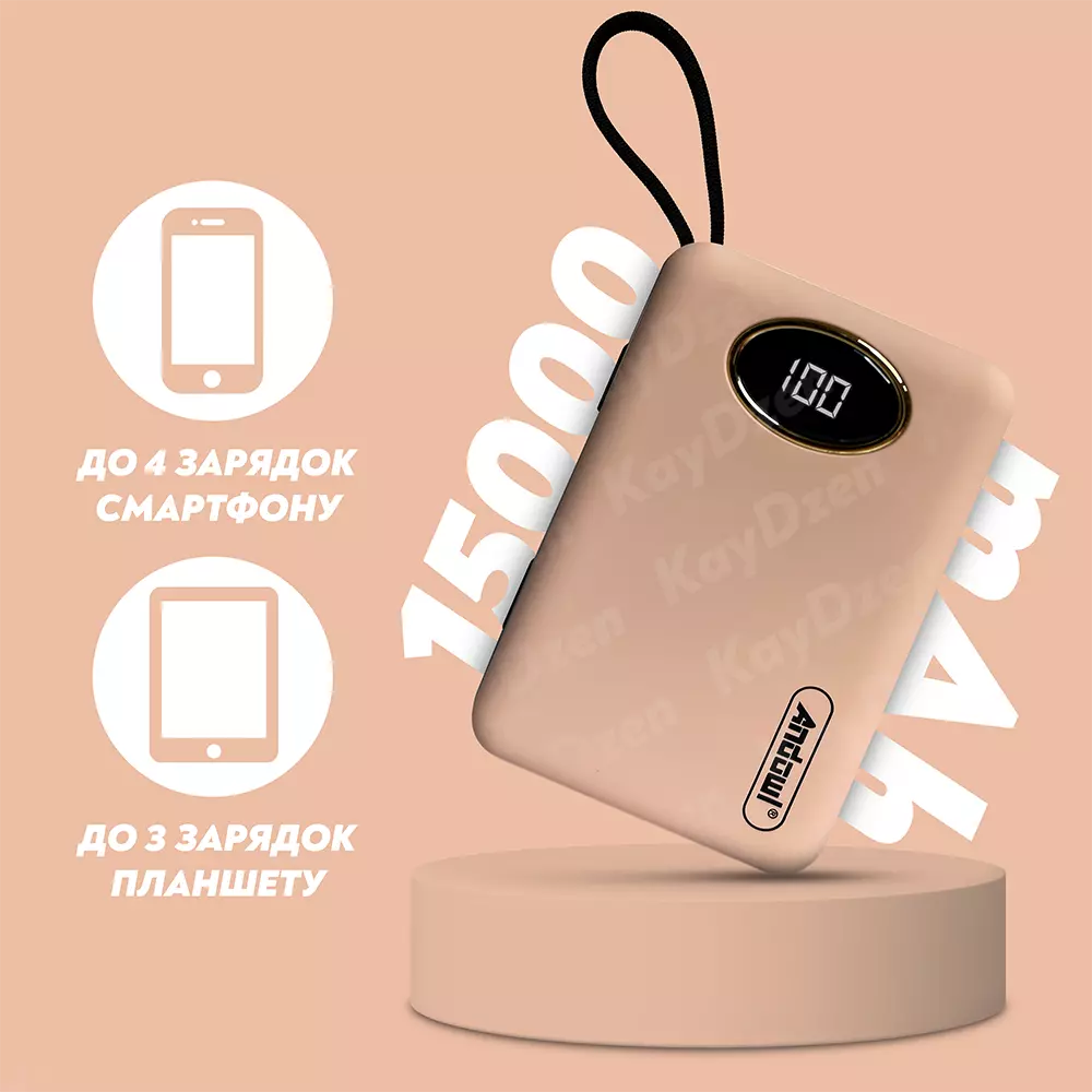УМБ Andowl Q-CD225 Power Bank 15000 mAh QC 3.0 22.5w с быстрой зарядкой Розовый Внешний аккумулятор УМБ (повер
