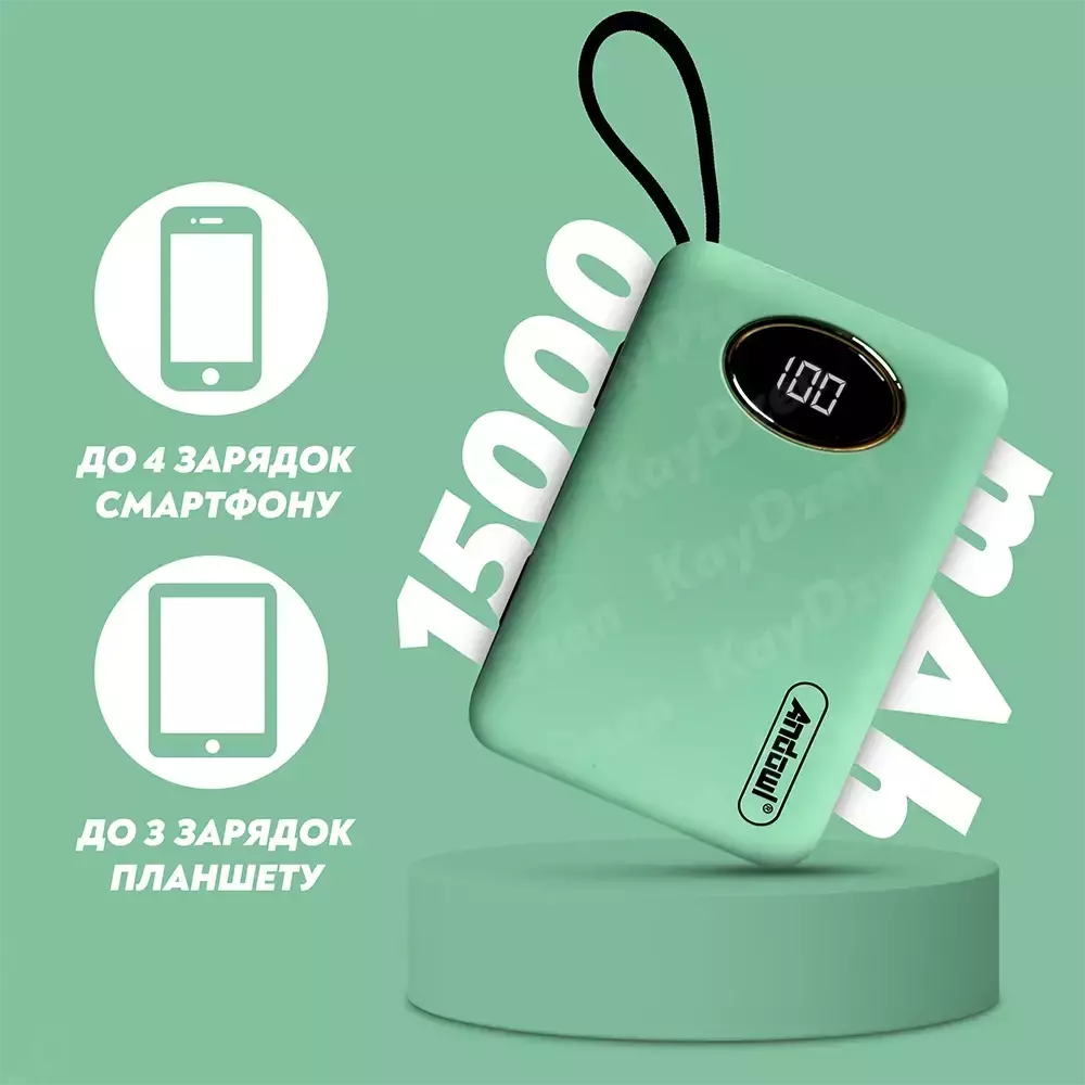 УМБ Andowl Q-CD225 Power Bank 15000 mAh QC 3.0 22.5w с быстрой зарядкой Зеленый Внешний аккумулятор УМБ (повер