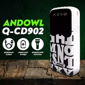 Портативная батарея Andowl Q-CD902 отличается стильным дизайном, высокой емкостью батареи и возможностью подключения нескольких устройств. Универсальная мобильная батарея Andowl Q-CD902 емкостью 30000 mAh совместима со всеми современными смартфонами и планшетами. Также УМБ Andowl Q-CD902  располагает наличием встроенных кабелей microUSB, USB Type C, USB Type A и Lightning с тыльной стороны устройства.
