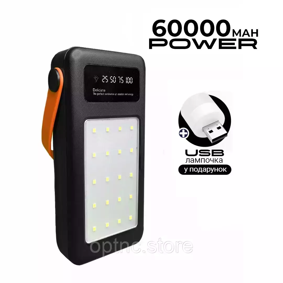 Bank 60000mAh Delicate с кабелями и фонариком –