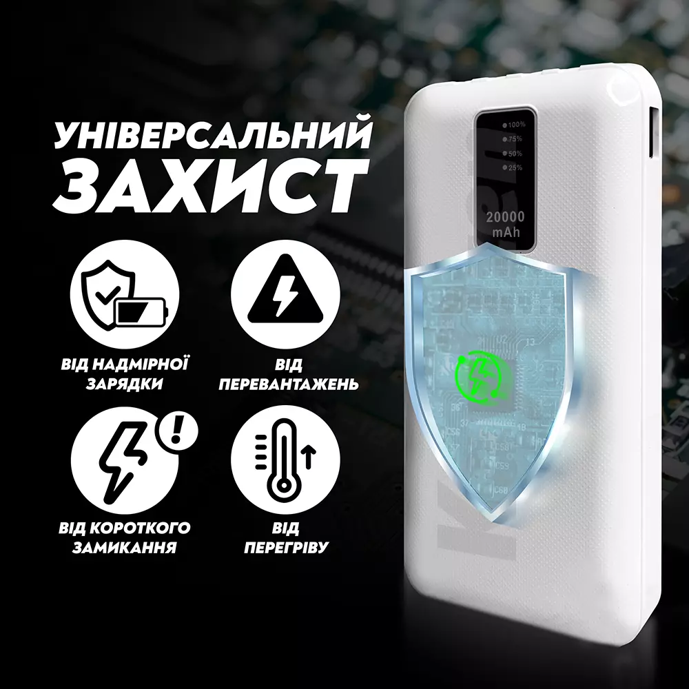 Универсальность этого аккумулятора подтверждается наличием разъемов Lightning, Type-C, MicroUSB, делая его совместимым с широким спектром устройств. Встроенная система защиты автоматически адаптируется к различным устройствам, предотвращая чрезмерный ток, перегрев и перегрузку, обеспечивая безопасность использования.
