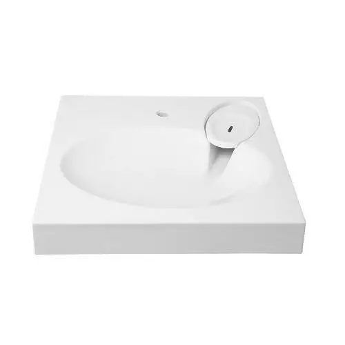 Підвісний умивальник над пральною машиною з литого акрилу посилений декількома шарами полімерних матеріалів і смол, має:
