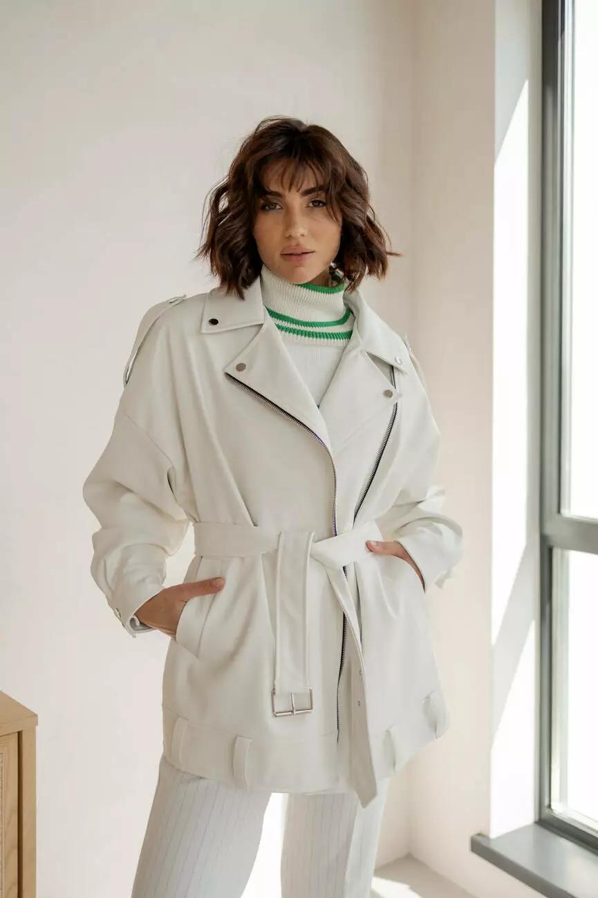 Універсальна куртка PILOT NEW (подовжена) з екошкіри оверсайз з ременем білого кольору