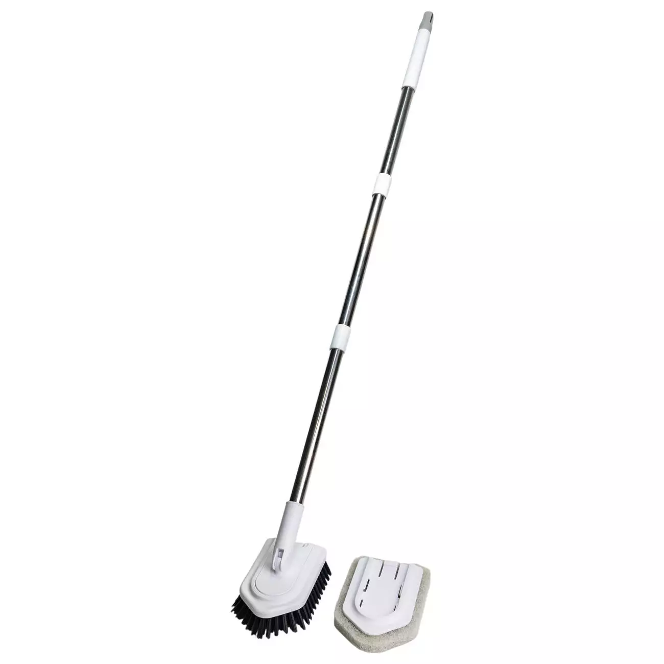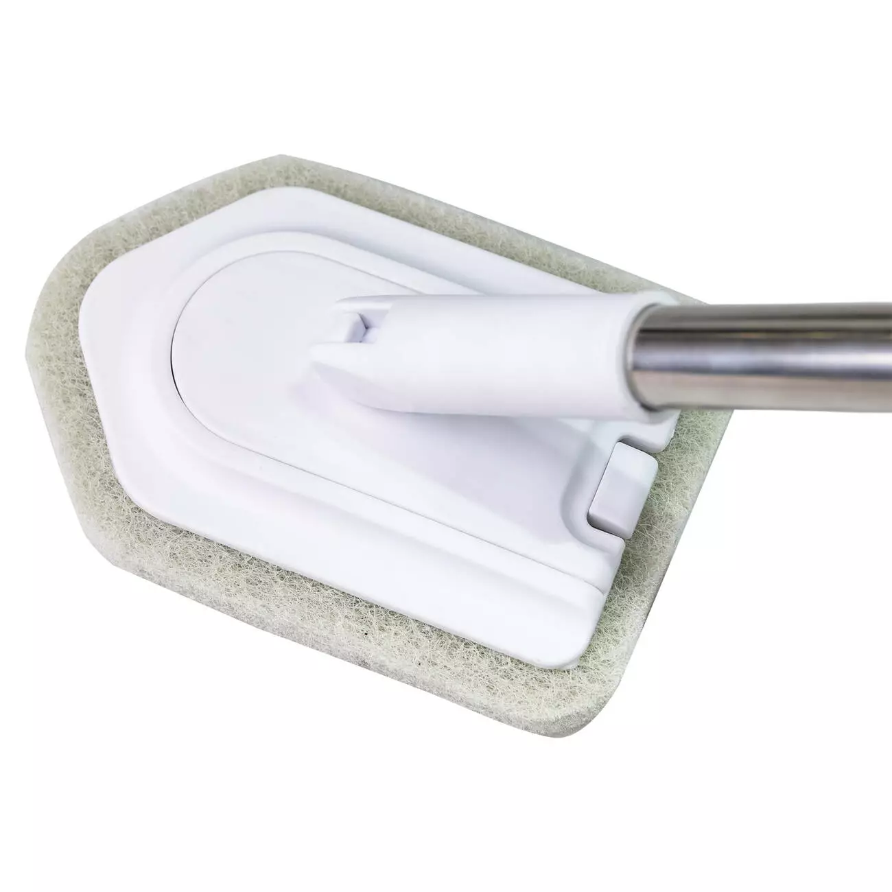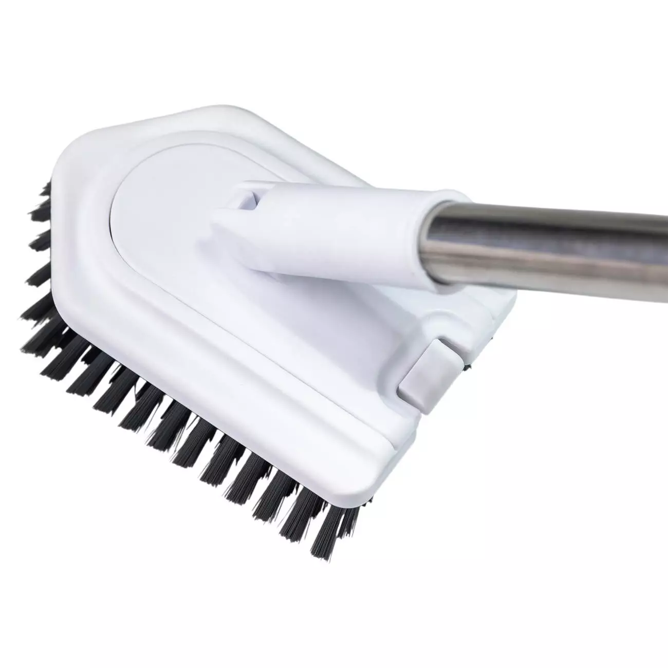 Ручка з нержавіючої сталі має висоту 90 см, що дає можливість підібрати зручне положення під час прибирання та зменшити навантаження на спину. Багатокутна форма основи полегшує доступ до кутів і важкодоступних зон уздовж стін та меблів. Поворотний механізм щітки на 180 градусів забезпечує маневреність і контроль рухів.