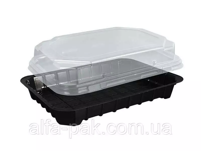 фиксируется при помощи ребер. Упаковка для суши ПС-63ДЧ+ПС-63К