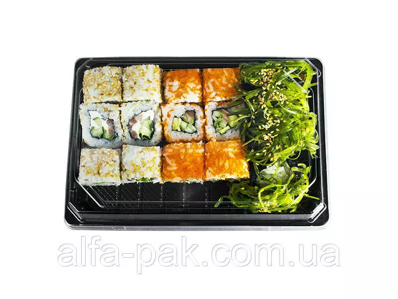 Упаковка для суши это удобный комплект, состоит из черного дна и