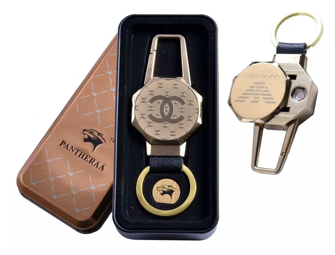 USB зажигалка в подарочной металлической коробке (брелок + фонарик)