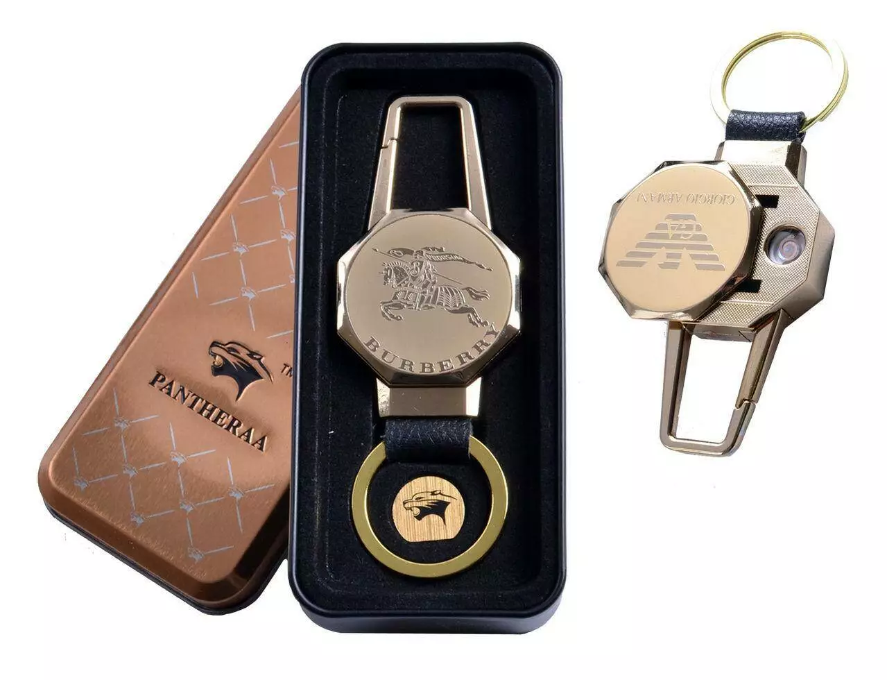 USB зажигалка в подарочной металлической коробке (брелок + фонарик)