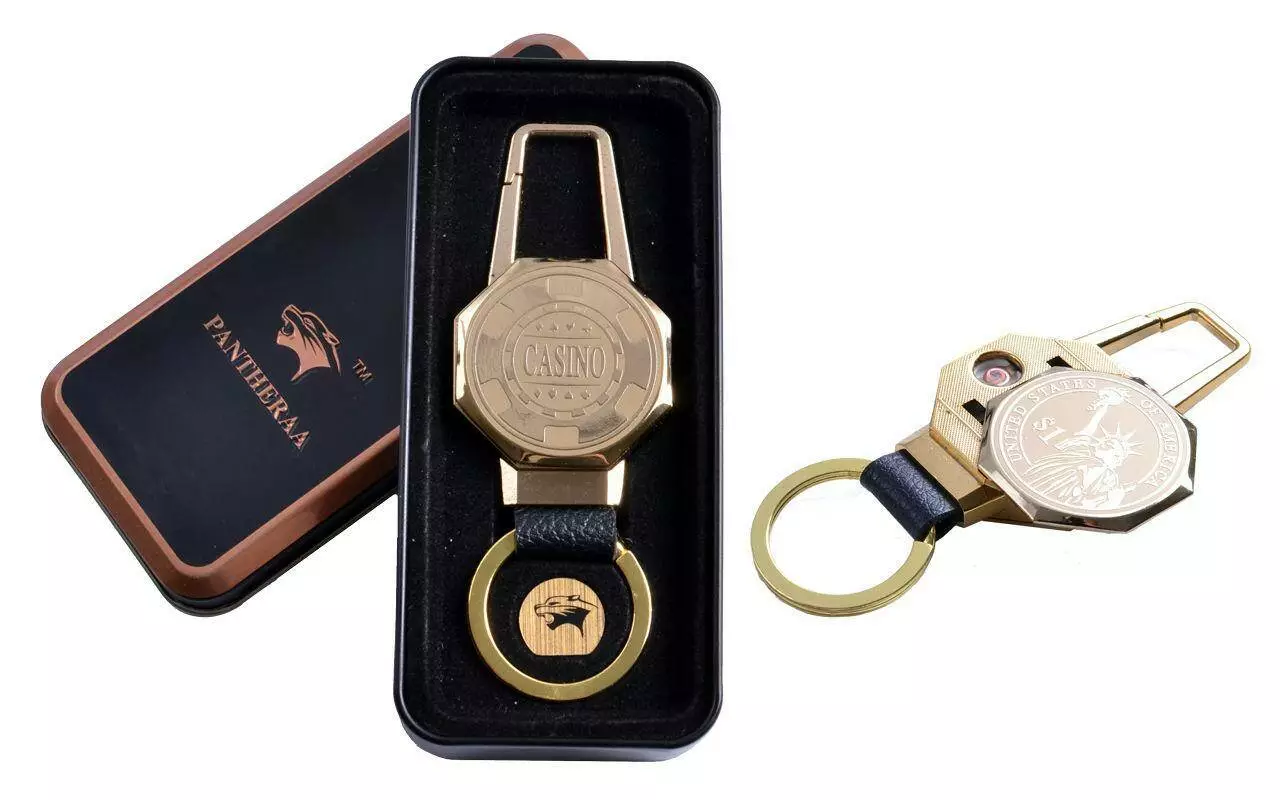 USB зажигалка в подарочной металлической коробке (брелок + фонарик) №4687C-2
