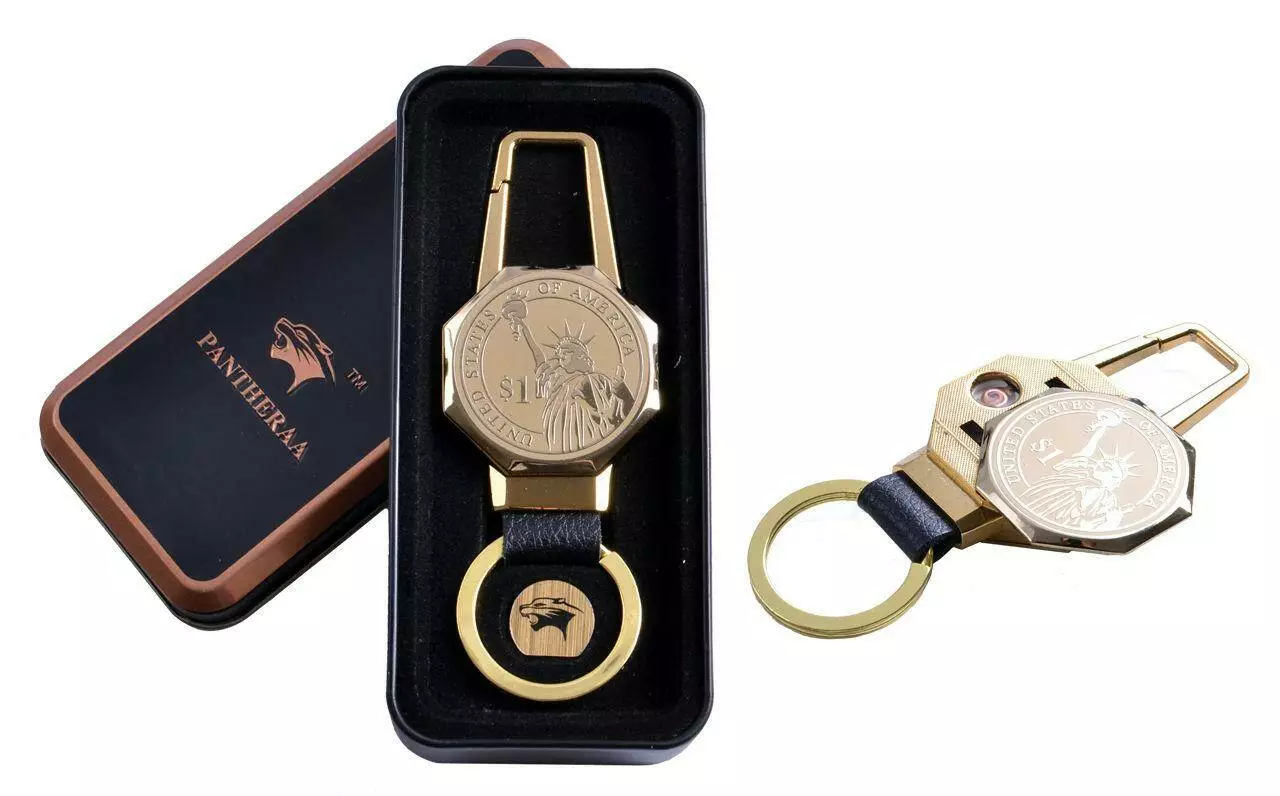 USB зажигалка в подарочной металлической коробке (брелок + фонарик)