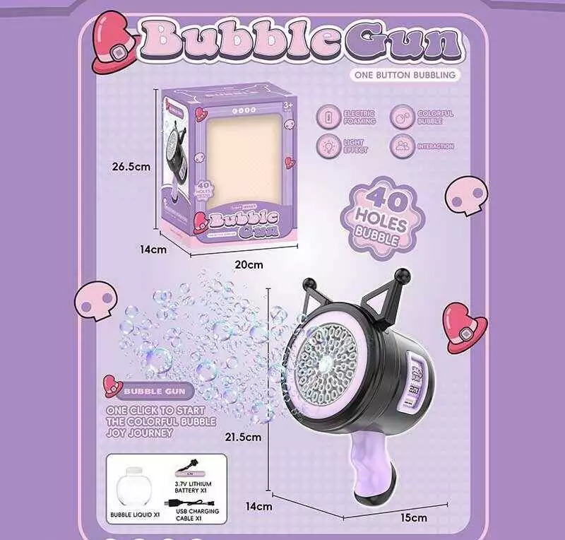 Установка з мильними бульбашками 137 (36) акумулятор 3.7 V, підсвічування, пляшечка із мильною рідиною, в коробці