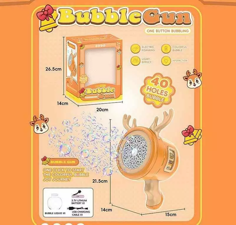 Установка з мильними бульбашками 139 (36) акумулятор 3.7 V, підсвічування, пляшечка із мильною рідиною, в коробці