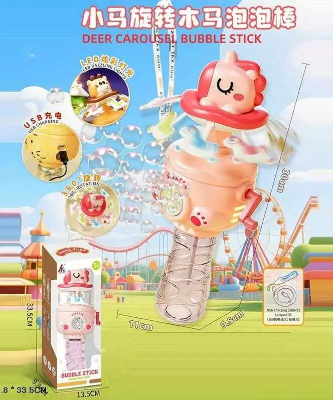 Головна > Каталог > Іграшки > Мильні бульбашки > Установка з мильними бульбашками 855 B (30) «Парк розваг», світло, автоматична, карусель обертається, пляшка з розчином, вбуд. акумулятор, в коробці оптом