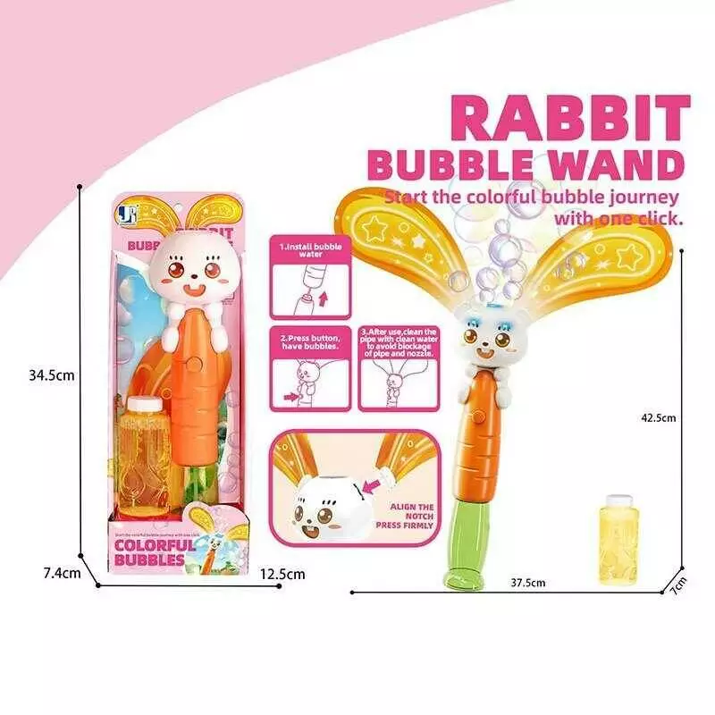 Головна > Каталог > Іграшки > Мильні бульбашки > Установка з мильними бульбашками P 82418 (64/2) «Кролик», підсвічування, автоматична робота, пляшка з мильним розчином, в коробці оптом