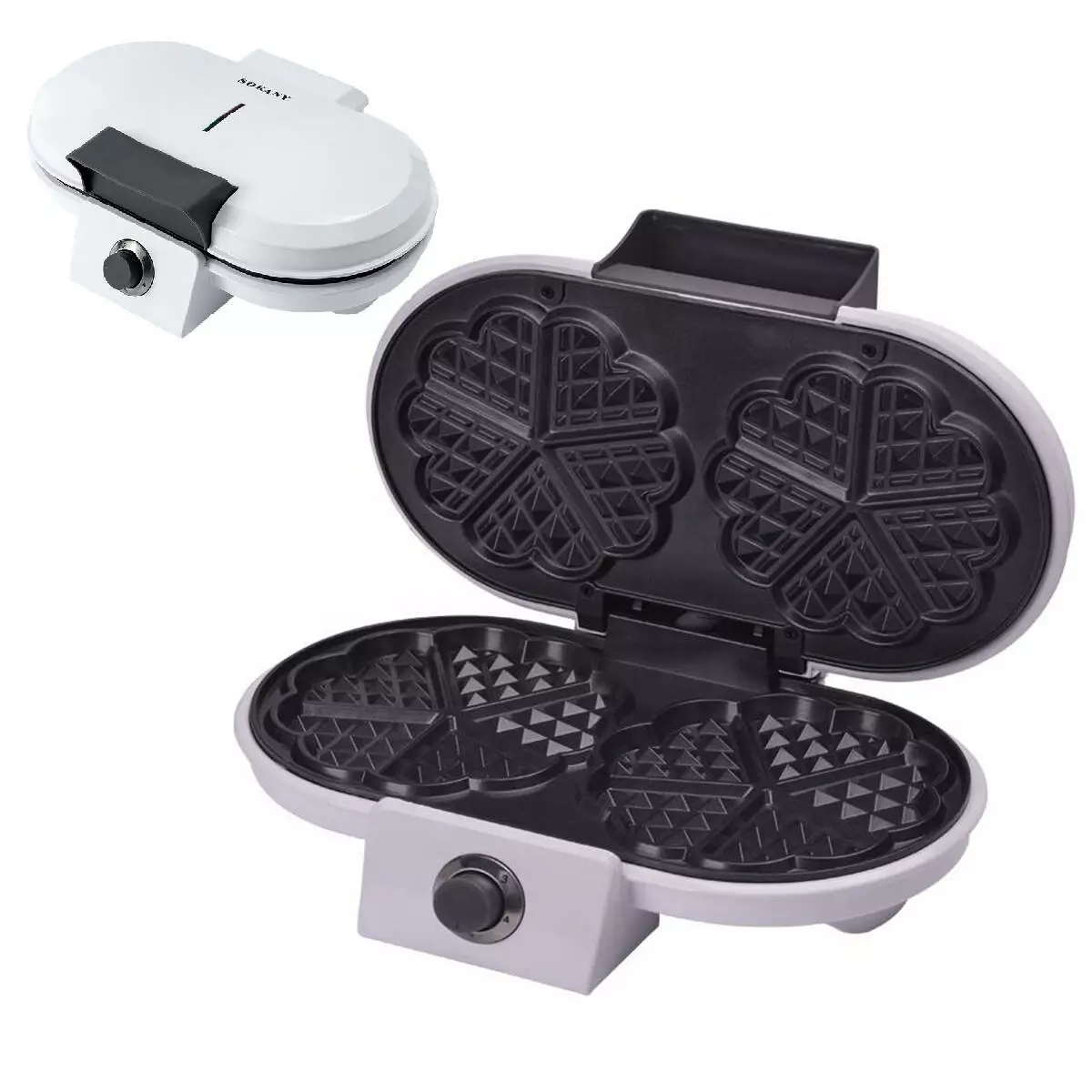 Вафельниця для товстих вафель SOKANY KJ-510 з антипригарним покриттям, білий