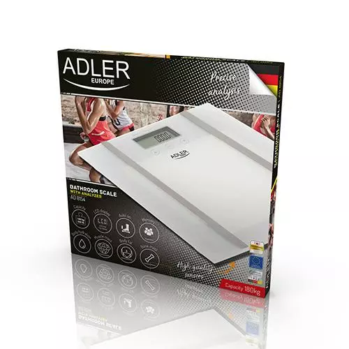 Ваги Adler AD 8154 - це набагато більше, ніж просто перевірка ваги. Він оснащений низкою функцій, які дозволяють краще піклуватися не лише про вагу тіла, а й про загальний стан здоров’я. Ваги перевіряють вашу гідратацію, жирові відкладення, а також кісткову та м’язову масу. На основі результатів система рекомендує кількість спожитих калорій. Завдяки цьому ваги Адлера ідеально підходять для будь-якої ситуації, коли ви контролюєте свою вагу - як коли ви хочете схуднути, так і коли ви нарощуєте м'язову масу.
