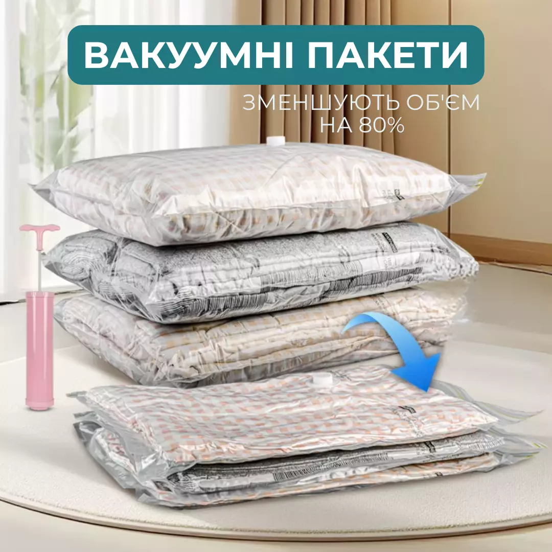 Набір вакуумних пакетів для пакування та зберігання речей з ручним