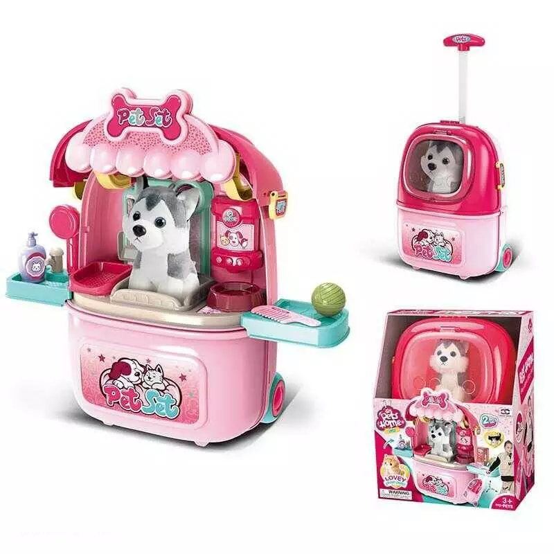 Валіза з улюбленцем 008-980-3 (9) “Грумінг салон”, м’яка іграшка, аксесуари, полички, приладдя, висувна ручка валізи, в коробці