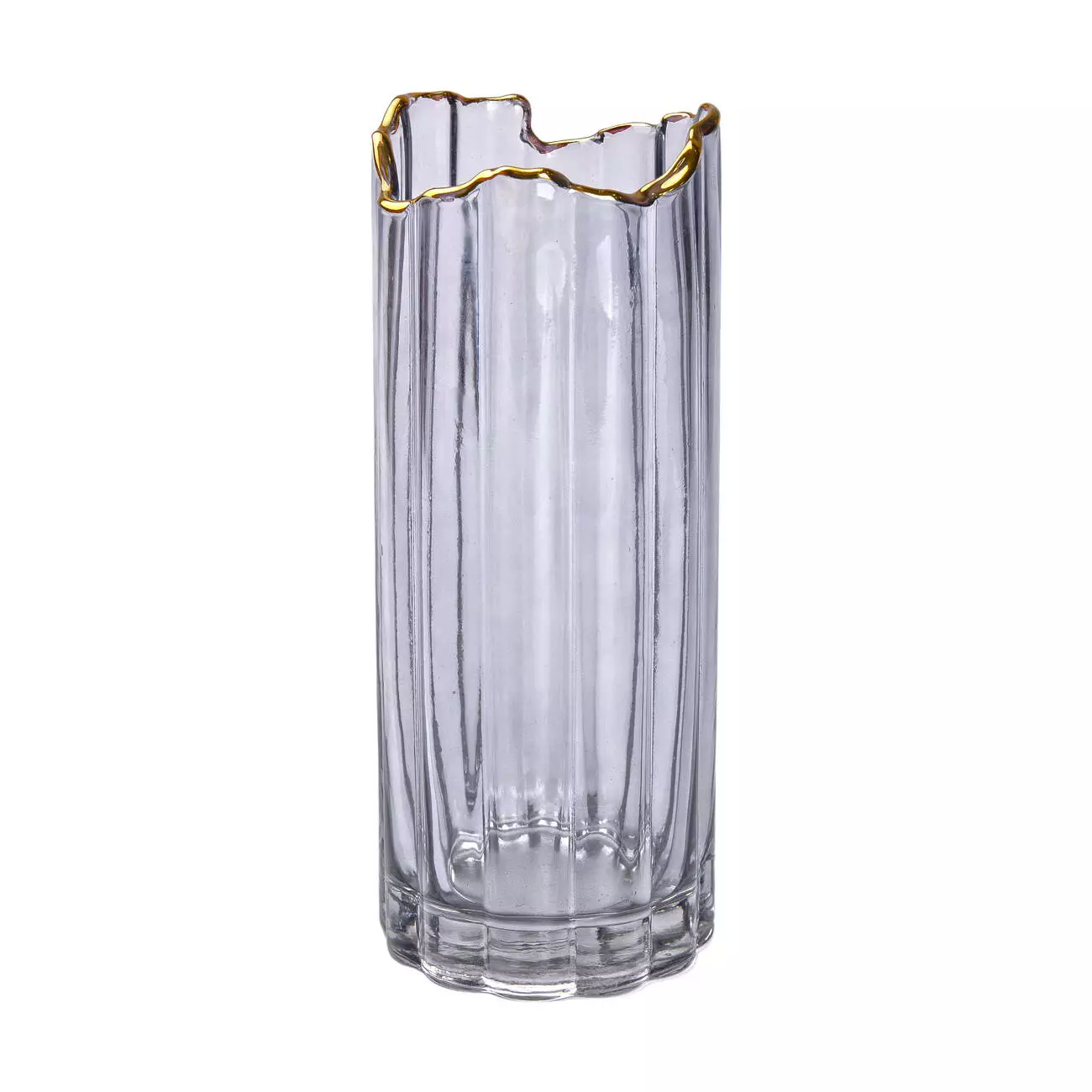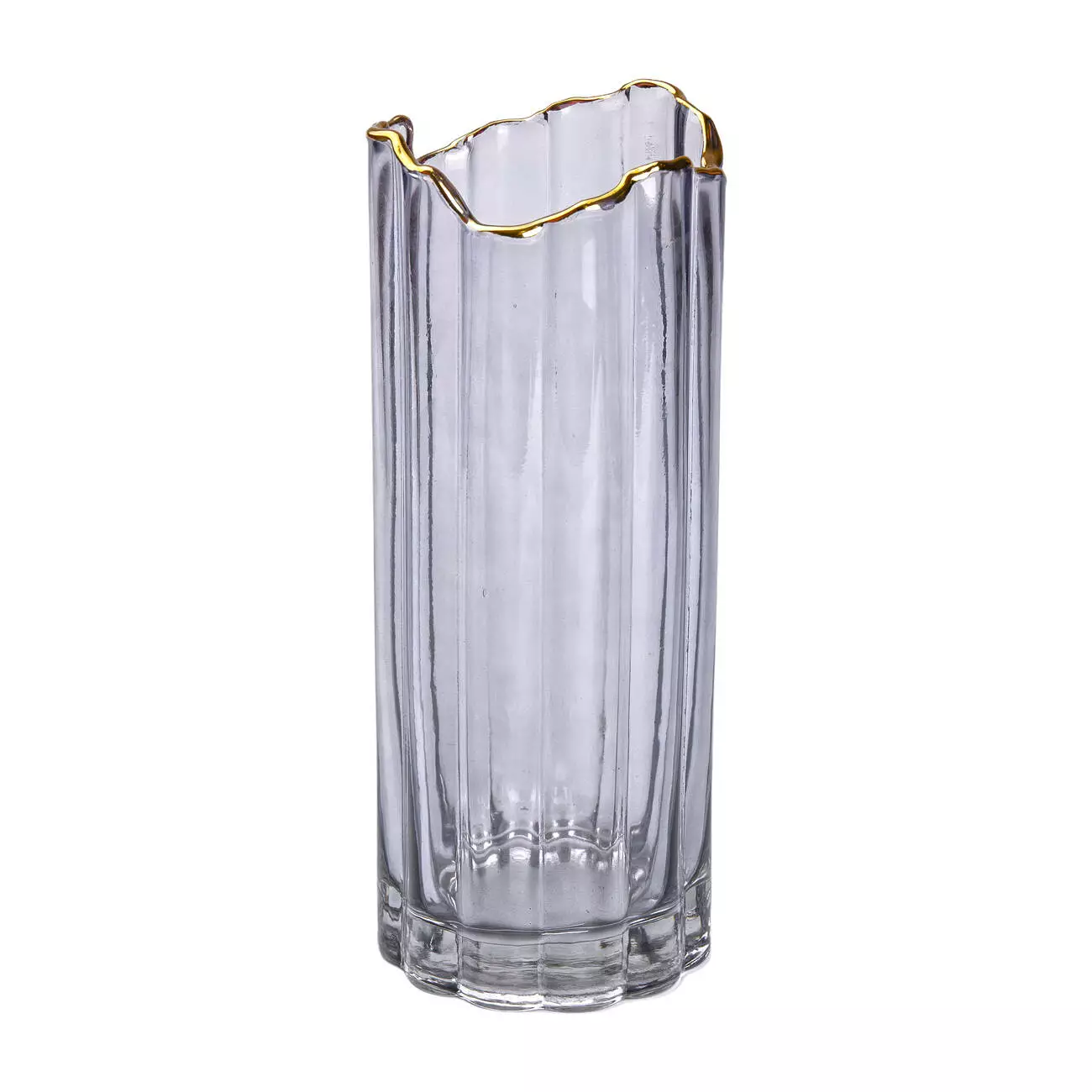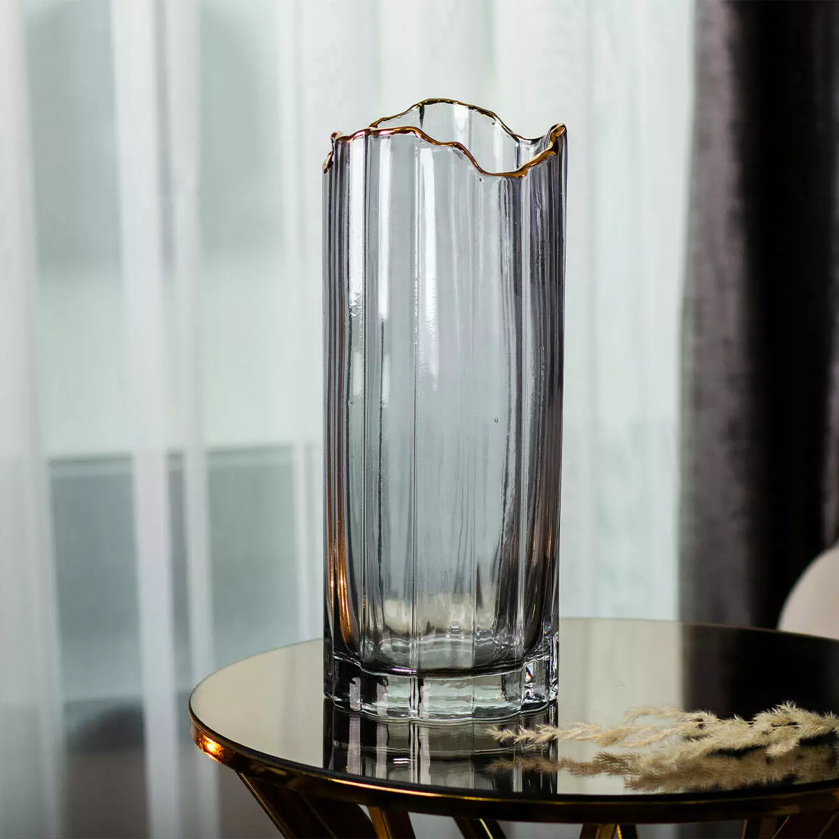 Декоративна ваза Glass Flower — це стильний і витончений елемент декору, виконаний у формі бутона квітки. Виготовлена зі скла, вона має висоту 30 см і сірий колір, що додає їй сучасного та елегантного вигляду. Золотий обідок надає вазі вишуканості та робить її ефектним акцентом у будь-якому інтер'єрі. Форма бутона підкреслює витонченість дизайну, роблячи вазу не лише функціональним, а й декоративним елементом.