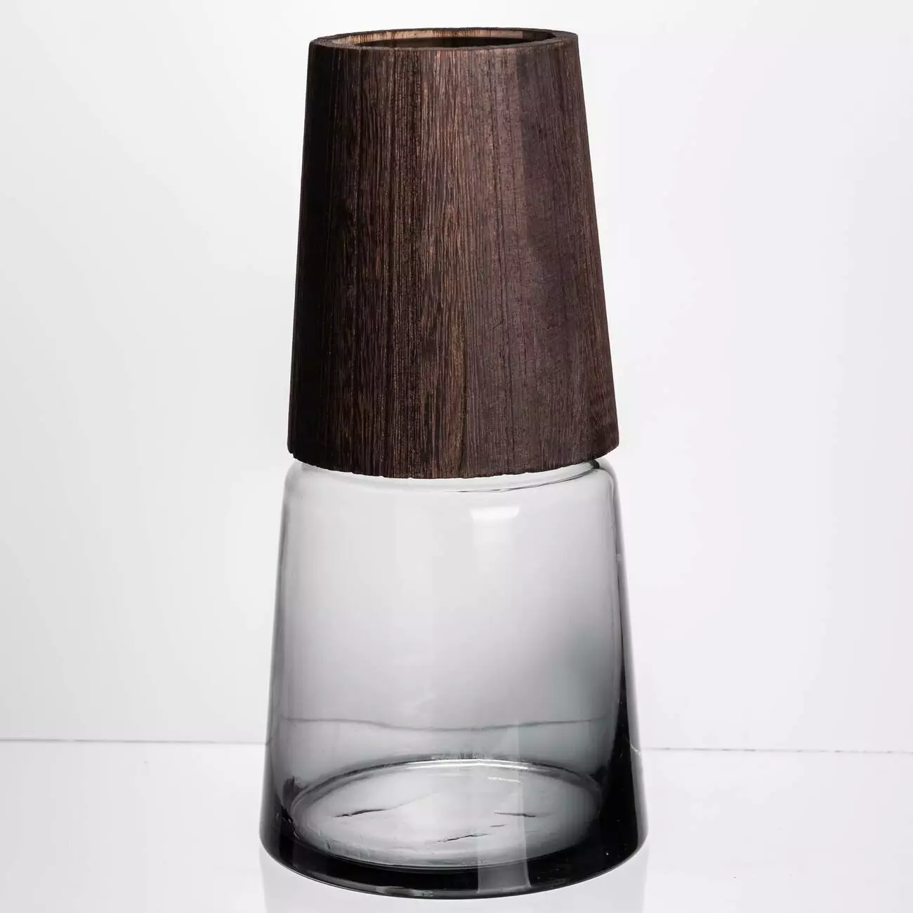 Елегантна ваза, виконана з використанням дерева та скла –