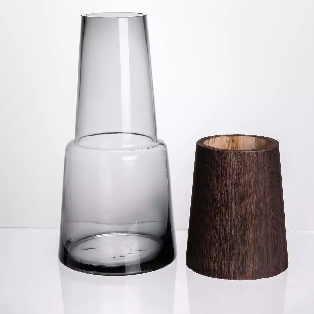 прозорого димчастого скла та теплого матового дерева надає виробу