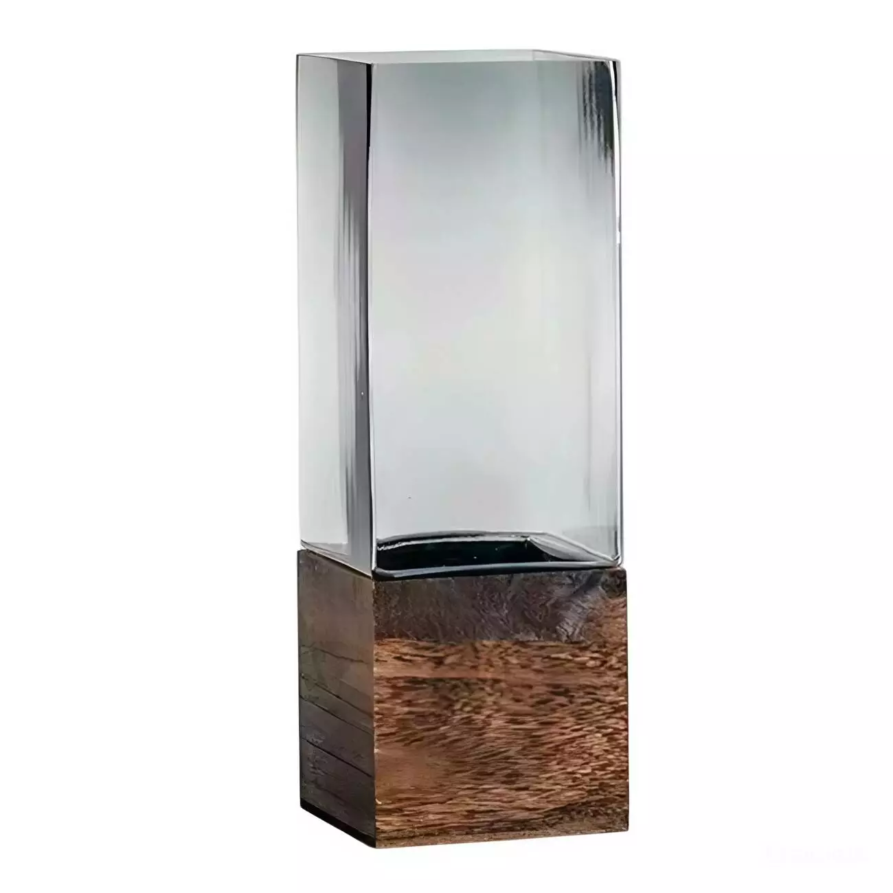 Ефектна ваза, що поєднує прозорість скла та теплу фактуру натурального дерева. Суворі геометричні форми та мінімалістичний дизайн роблять її універсальним елементом декору: підійде як для сучасних інтер'єрів у стилі мінімал та скандинавського затишку, так і для контрастних акцентів у класичних приміщеннях.