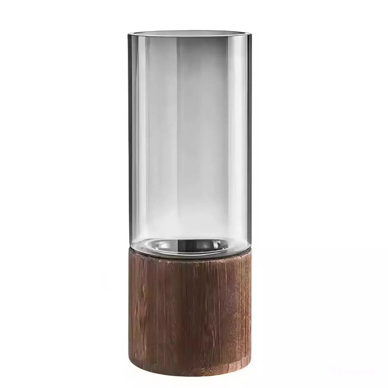Ця ваза – стильний та багатофункціональний елемент декору, який ідеально доповнить сучасний чи скандинавський інтер'єр. Поєднання гладкого тонованого скла і темного, текстурного натурального дерева створює унікальний акцент, що запам'ятовується. Чіткі геометричні лінії та нейтральна кольорова гама роблять вазу відмінним вибором для мінімалістичних та лофт-приміщень.