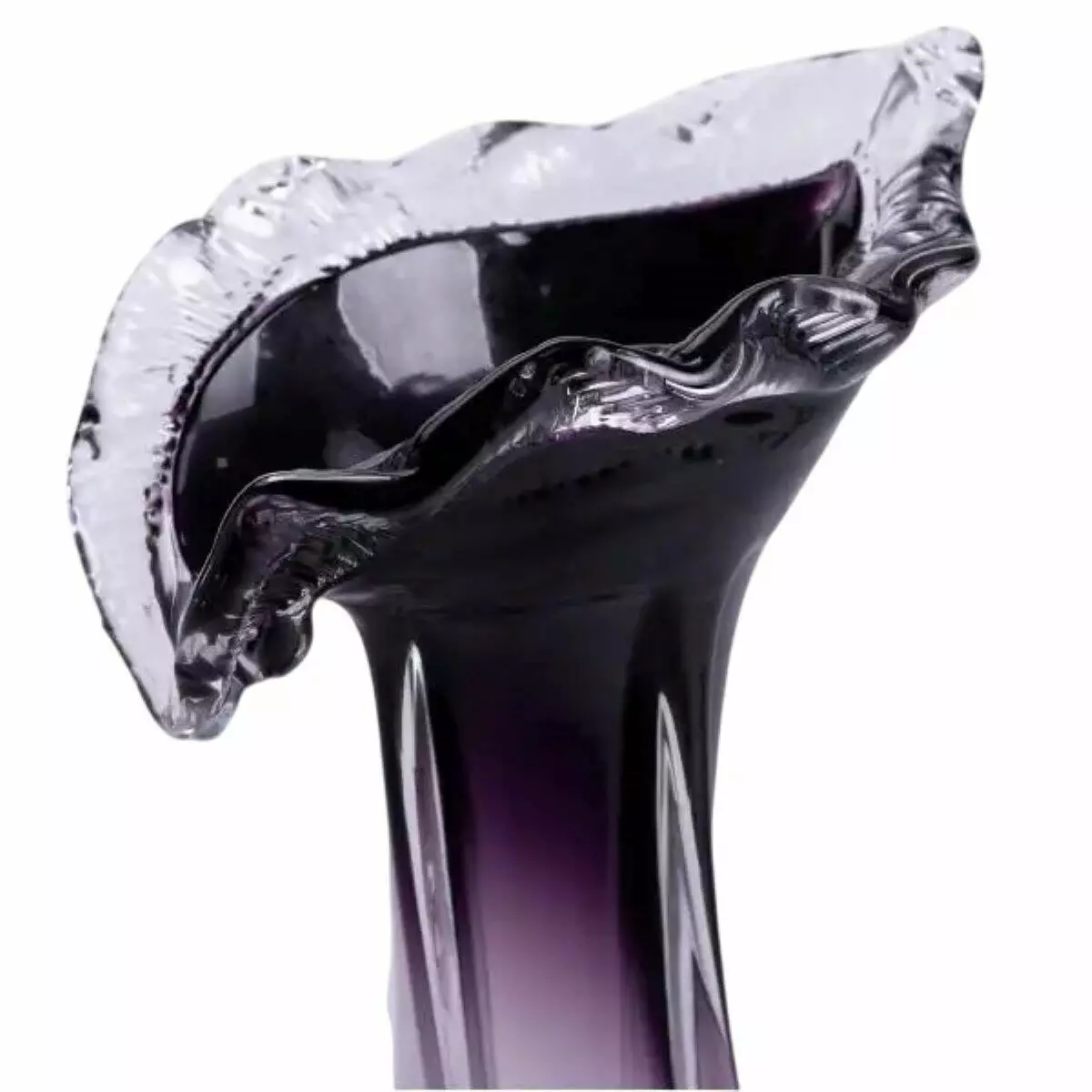 Скляна ваза Castillo ручної роботи – це стильний аксесуар, який поєднує класичні форми та сучасний дизайн. Виготовлена зі скла з плавним переходом фіолетового відтінку в прозорий, вона має витончений силует і рельєфний верхній край. Завдяки унікальному процесу ручного виробництва кожна ваза має неповторні деталі та легкі варіації у кольорі.