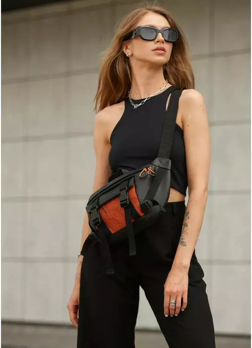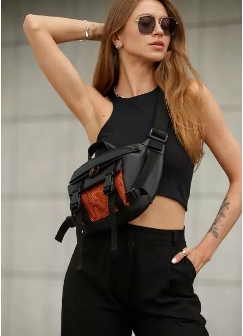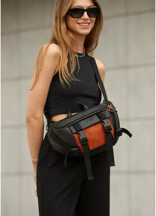 Велика жіноча поясна сумка бананка Sambag DynamicDart чорно-оранжева