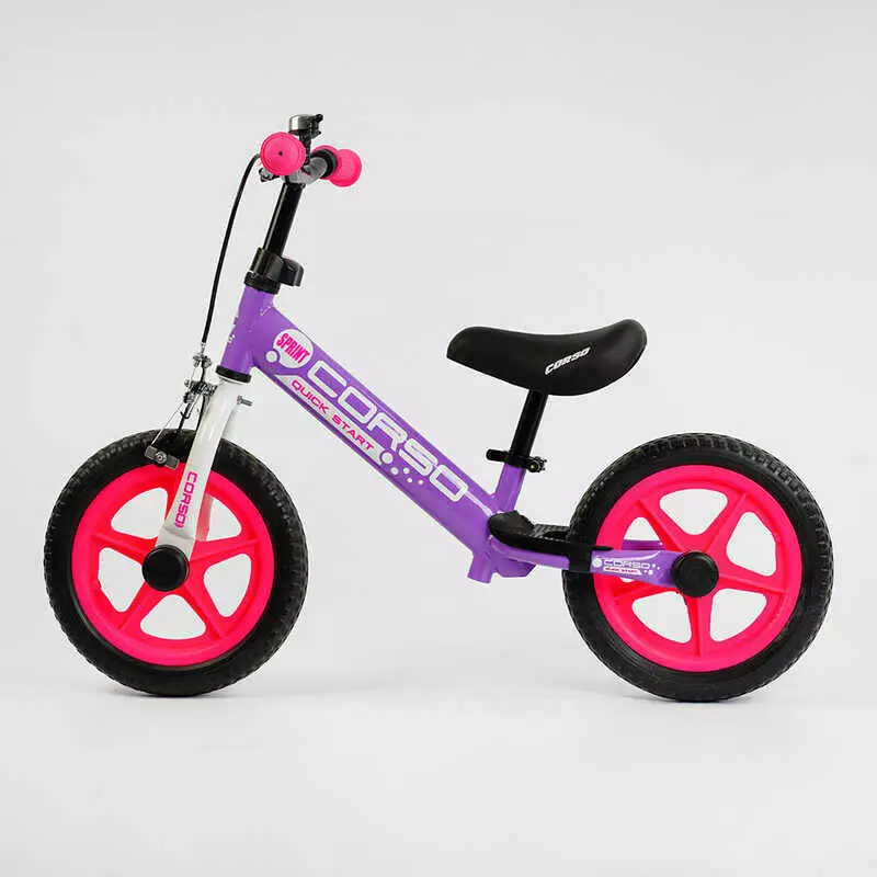 Велобег "CORSO" 19375 (1) стальная рама, ручной тормоз, колесо 12" EVA (ПЕНА), подставка для ножек, подножка