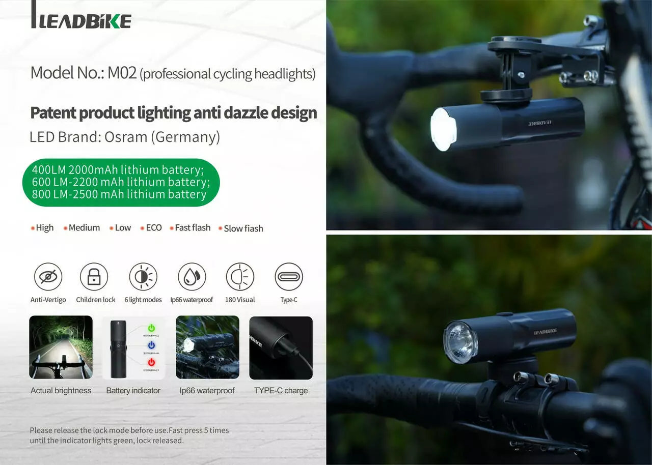 Велофара потужна LEADBIKE M02-OSRAM 400LM, 2000 mAh,waterproof,