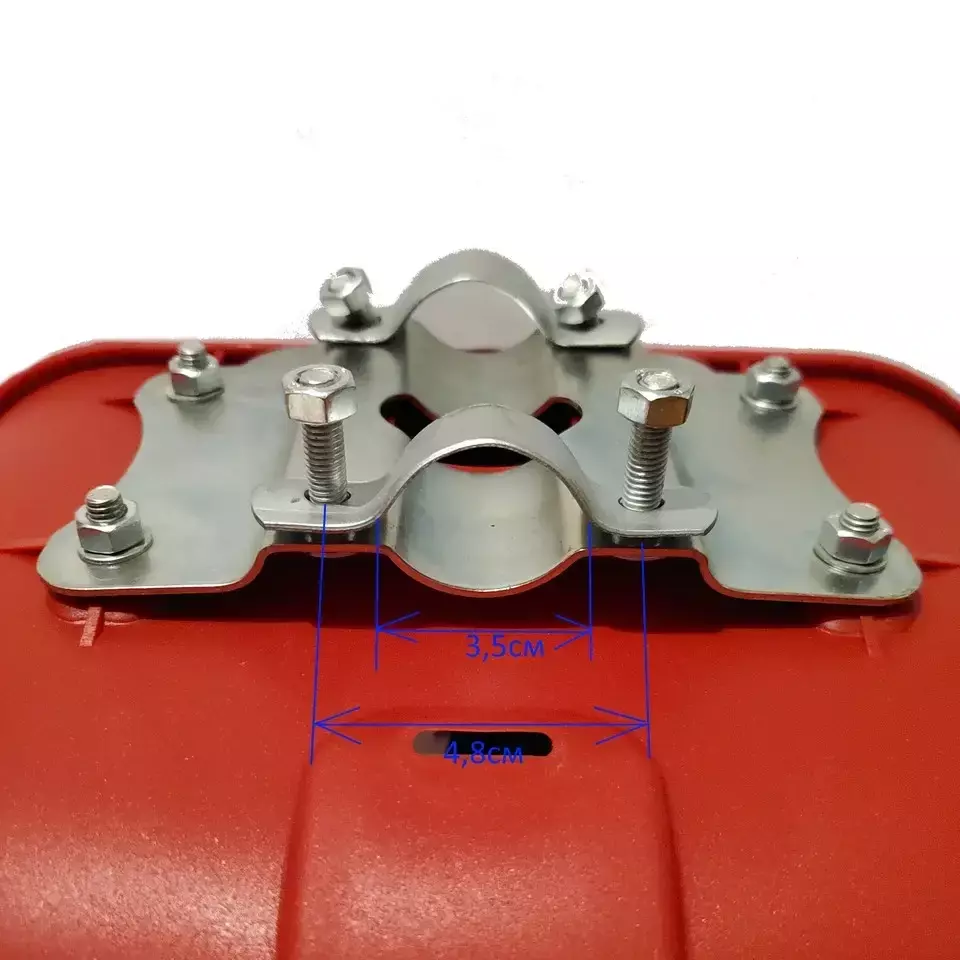 У комплекті йдуть болти під трубу до 35 мм діаметром. Для товстіших труб знадобиться купити подовжені болти діаметром 6 мм.