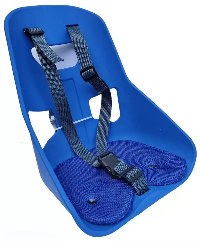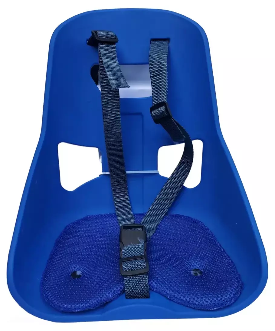 Просте практичне та зручне крісло з міцного пластику. Ремені безпеки для більшої безпеки та м'яка тканинна вставка — для зручності.