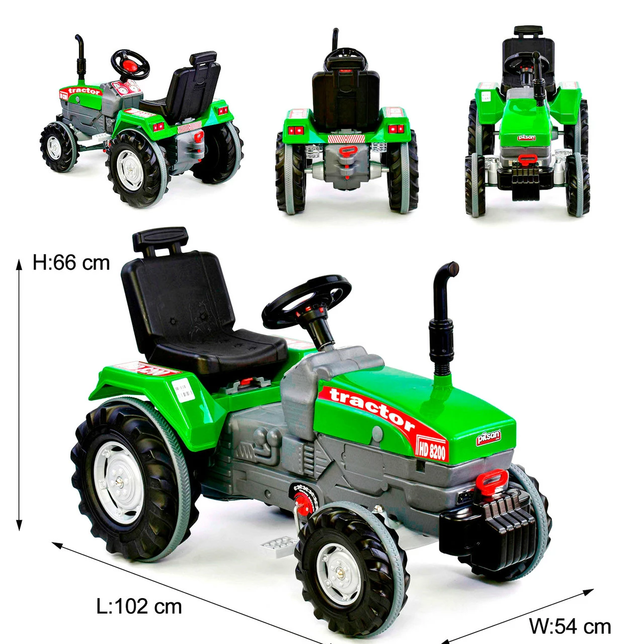 может крутить педали и управлять трактором с помощью руля. Трактор