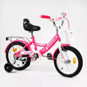 Дитячий двоколісний велосипед Corso 14” призначений для юних велосипедистів! Новий дизайн велосипеда, його комплектація та надійна конструкція зроблять прогулянки на свіжому повітрі активними та безпечними. Конструкція велосипеда виконана зі сталевого міцного сплаву, який не дасть його рамі деформуватися і забезпечить її стійкістю до пошкоджень. Рама представленої моделі із заниженою конструкцією, що робить її зручнішою для дитини. Маля без проблем зможе сісти на велосипед і встати з нього. Колеса Corso 14” із надувною камерою на металевих дисках зі спицями. Над кожним колесом встановлені крила із металу. Вони запобігають розбризкуванню бруду та води та захистять дитину та сам велосипед від забруднень. Кермо та сидіння велосипеда регулюється по висоті, що дасть можливість підібрати оптимальний розмір для кожної дитини індивідуально. Ручки керма з гумовими накладками, що не ковзають. Безпеку під час катання забезпечать: металевий захисний щит на ланцюгу велосипеда, м'яка накладка на його кермі, а також кілька світловідбиваючих катафотів. Corso 14” обладнаний переднім ручним та заднім ножним гальмами. Спеціально для невпевнених велосипедистів дана модель комплектується двома знімними страховими колесами із пластику та невеликою батьківською ручкою на сидінні. Додатково велосипед обладнаний металевим багажником із затискачем, а також механічним дзвінком на кермі. Характеристики: - вік: 4-5 років, зріст: 90-105 см; - діаметр коліс: 14”; - каретка: American (Американка); - велосипед зібраний на 75%; Маса Нетто: 9,4 кг. Маса Брутто: 10,6 кг.
