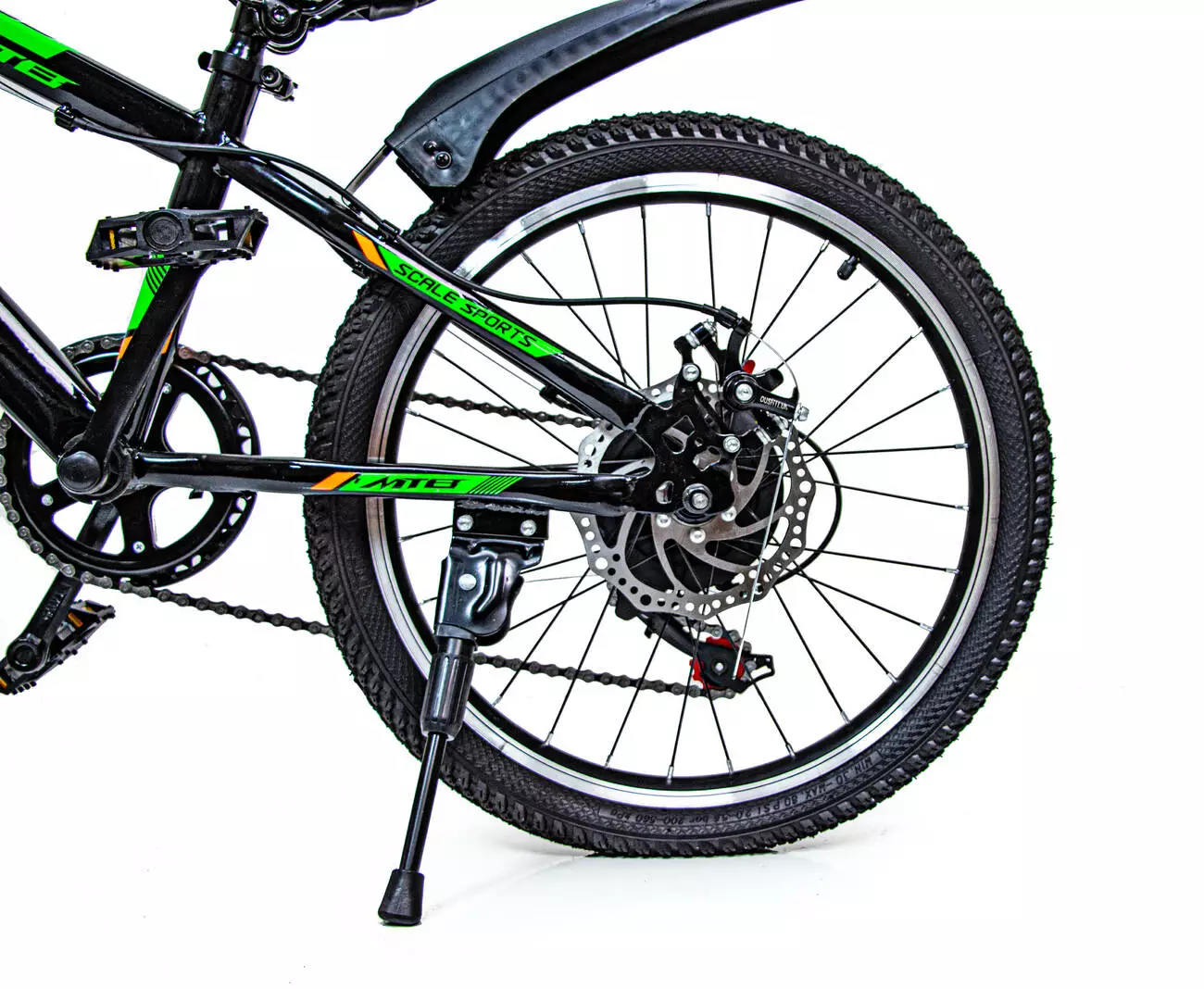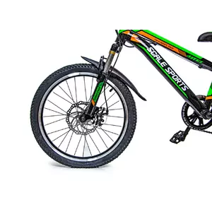 <p><em><strong>Велосипед 20 "Scale Sports" Зелёный, Ручной и Дисковый</strong></em></p><br /> <p>Конструкция велосипеда выполнена из прочного стального сплава, который не даст его раме деформироваться и обеспечит её устойчивостью к повреждениям.</p><br /> <p>Над каждым колесом установлены крылья. Они предотвратят разбрызгивания грязи и воды и защитят ребенка и сам велосипед от загрязнений. Ручки руля с резиновыми нескользящими накладками.Велосипед оборудован передним и задним ручным дисковым механическим тормозом.</p><br /> <p><strong>Характеристики:</strong></p><br /> <p>Возраст: 8-12 лет, рост: 120-140 см;</p><br /> <p>Диаметр колес: 20”, ширина - 5 см;</p><br /> <p>Высота сидения от пола: min-61 см, max-82 (регулируемая);</p><br /> <p>Руль: высота от пола - 82 см, ширина - 57 см;</p><br /> <p>Общая длина велосипеда: 136 см;</p><br /> <p>Длина рамы: 96 см.</p><br /> <p>Размер рамы 11 дюймов</p><br /> <p>Количество скоростей: 7</p><br /> <p>Амортизация: 1 передний</p><br /> <p>Обод : одинарный алюминиевый</p><br /> <p>Количество звезд (передние): 1</p><br /> <p>Количество звезд (задние): 7</p><br /> <p>Передний переключатель скоростей: Shimano </p><br /> <p>Задний переключатель скоростей: Shimano </p><br /> <p>Велосипед собран на 75 %;</p><br /> <p>Вес велосипеда с коробкой: 14 кг.</p><br />