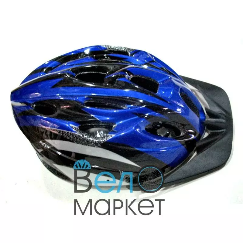 Велосипедний шолом універсальний зі знімним козирком синьо-чорний.